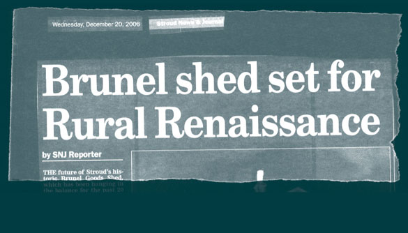 The Brunel Goods Shed is different to Stroud Preservation Trust's other projects: the Trust has been custodian of the Goods Shed for over quarter of a century whereas other buildings were passed on to new users quickly. The signing of the sublease with Stroud Valleys Artspace in May 2011 was the culmination of years of persistent hard work by members of the Trust, raising funds, maintaining and improving the building and negotiating with possible users.